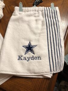 Wrap yourself in comfort or give the gift of luxury with a personalized towel. Our embroidered wrap towels are an excellent way to transform a generous gift into a customized keepsake. We combine quality materials, thoughtful customization, and exceptional client service to keep our customers happy.